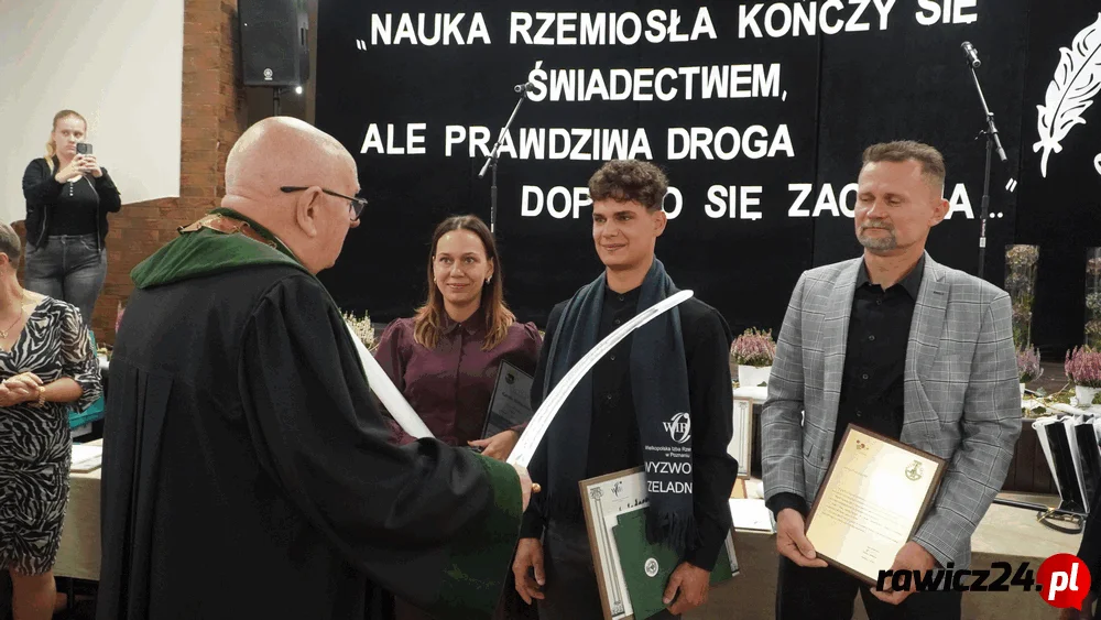 - Jestem niezmiernie dumny, iż jako reprezentant Cechu Rzemiosł Różnych w Rawiczu mogę uczestniczyć w tej wyjątkowej uroczystości. Drodzy absolwenci, gratuluję wam uzyskania szczytnego tytułu czeladnika, potwierdzającego wasze kwalifikacje zawodowe. Gratuluję imponujących wyników w nauce oraz wszelkich sukcesów. Każdy z was jest niepowtarzalnym, wyjątkowym i wartościowym młodym człowiekiem o nieograniczonych możliwościach. Niech to przesłanie towarzyszy wam każdego dnia, daje siłę i pozwala uwierzyć w siebie - powiedział Fabian Małecki, starszy Cechu Rzemiosł Różnych w Rawiczu.