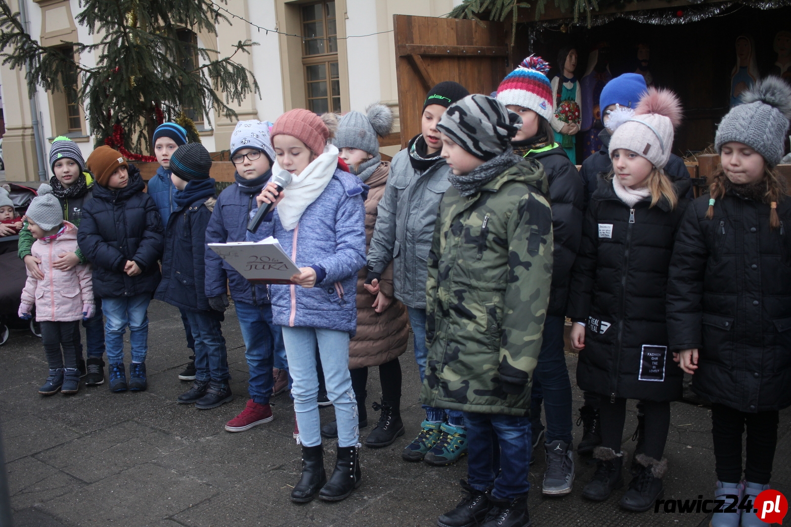 Kolędnicy z SP 4 przy żłóbku na rynku