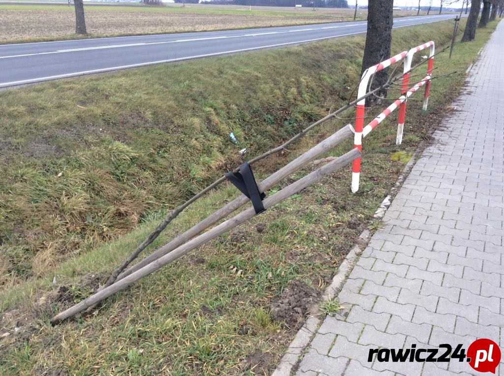 Połamane drzewka przy ścieżce Rawicz-Sarnowa