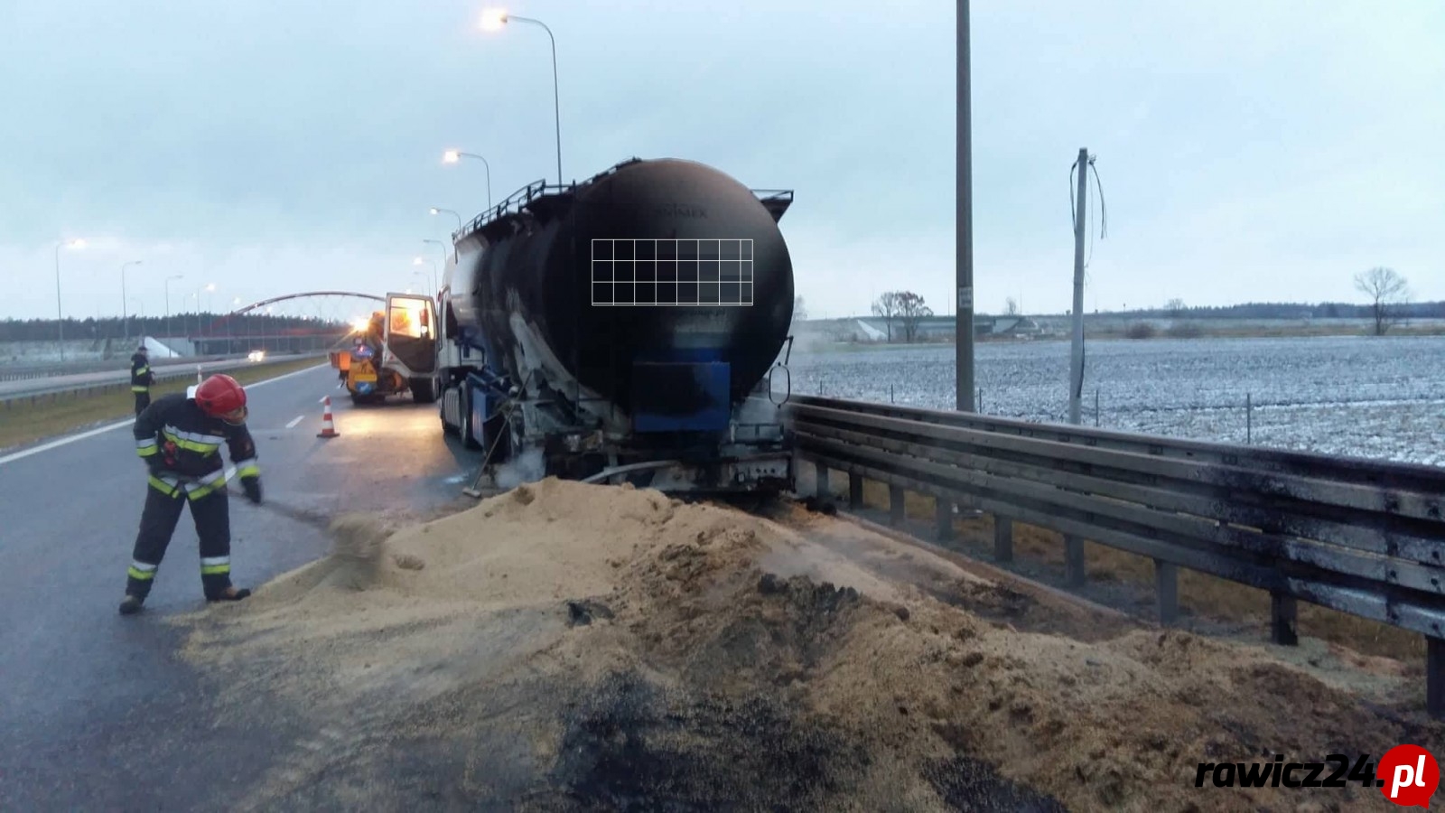 Pożar ciężarówki przy węźle Rawicz
