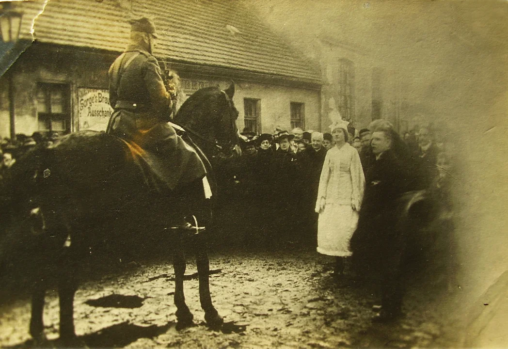Pochód ruszył z rynku w Miejskiej Górce, a na jego czele jechał konno płk. Władysław Sczaniecki z Łaszczyna. Burmistrz Sarnowy (jeszcze niemiecki) zmuszony okolicznościami wydukał powitanie, a polskie dziewczęta deklamowały wiersze i wręczały kwiaty. Płk. Sczaniecki w języku polskim i niemieckim odpowiedział, że obejmuje te ziemie w imieniu Polski. Zapewnił jednocześnie, że państwo polskie otoczy opieką wszystkich obywateli, będzie sprawiedliwe, ale będzie również wymagało lojalności poddanych i poszanowania prawa.