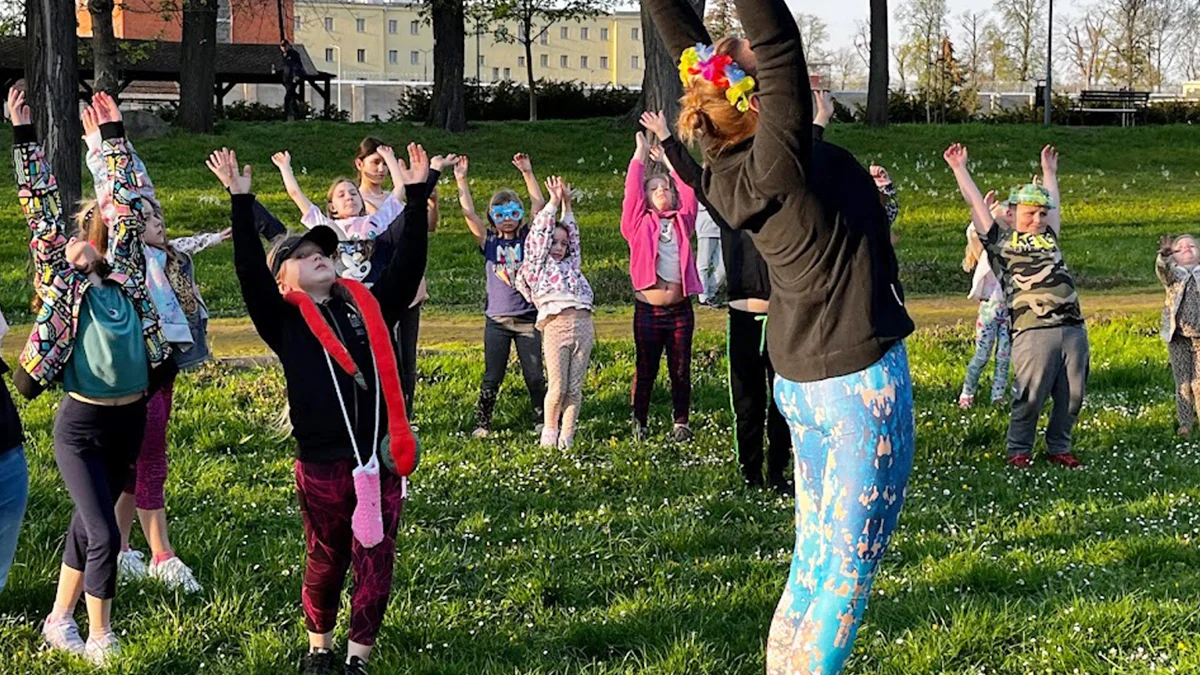 Zajęcia jogi w parku przy domu kultury w Rawiczu, bardzo ciekawie i przystępnie, prowadziła oficjalny ambasador Dnia Jogi dla Dzieci (na świecie są to 438 osoby, w Polsce 33) - Sylwia Henkulak-Matysiak.