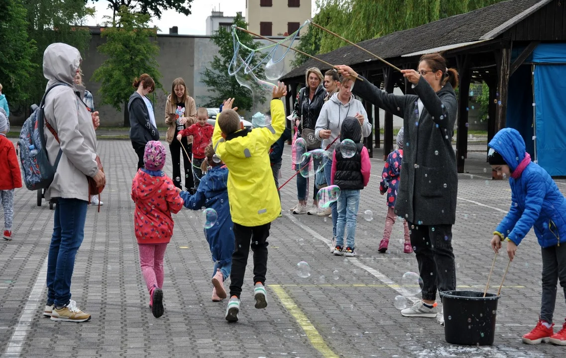 Bańkowe święto zgromadziło na targowisku kilkadziesiąt, jak nie kilkaset osób. Głównie były to dzieci z rodzicami i dziadkami. Czekały na nie wiadra wypełnione po brzegi płynem do puszczania baniek oraz specjalne różdżki.
