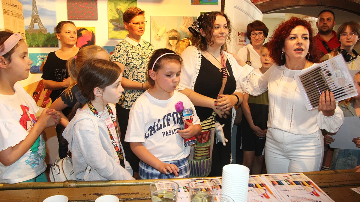 Galeria Sala Piecowa pękała w szwach, gdyż w wernisażu uczestniczyli prawie wszyscy uczestnicy zajęć wraz z osobami towarzyszącymi - rodzicami, babciami czy dziadkami. Każde dziecko otrzymało pamiątkowy certyfikat ukończenia kursu oraz zestaw pędzelków w prezencie.