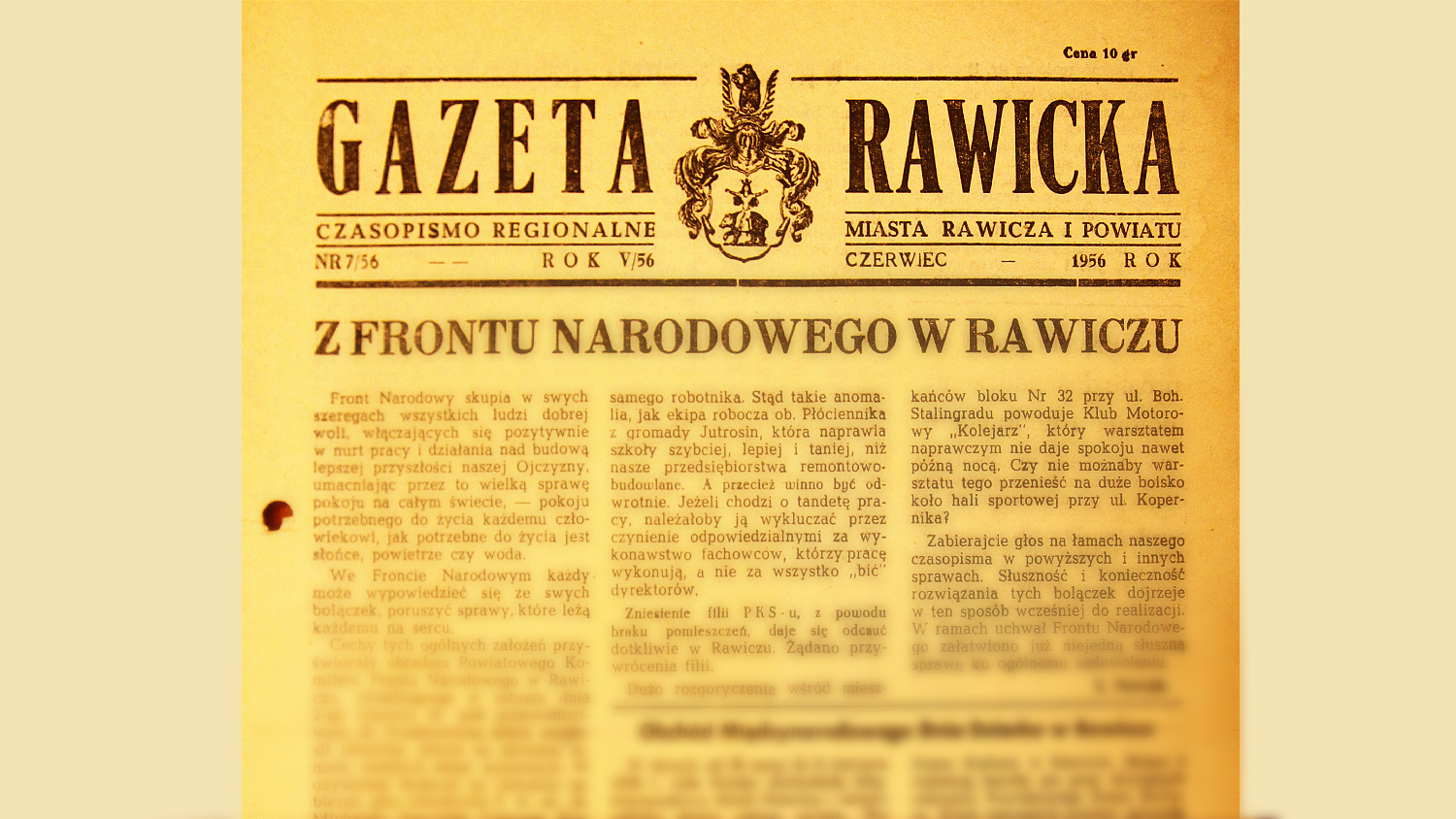 Artykuł odnosi się do obrad komitetu Powiatowego FJN, które miały miejsce 2 czerwca. Po referacie wstępnym „w ożywionej dyskusji” podniesiono „wiele spraw, nurtujących społeczeństwo rawickie”.