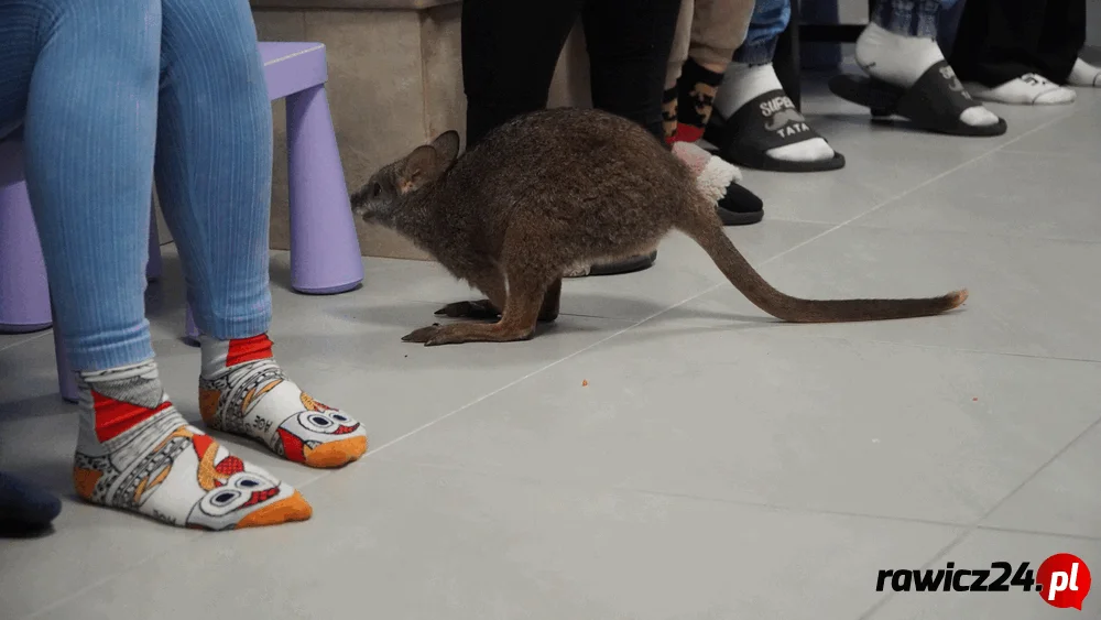Dzieci miały możliwość pogłaskania Kokosa, który jest kangurem hodowlanym.