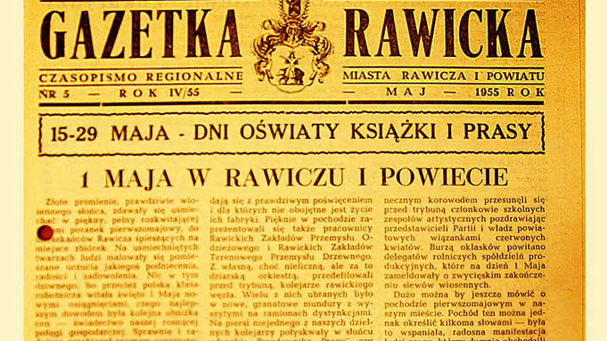 „Licznie zebrani na rynku mieszkańcy naszego miasta uważnie wysłuchali okolicznościowego przemówienia sekretarza KP PZPR tow. Karolaka, po czym ruszył wielobarwny pochód” - czytamy. „Manifestację ludności naszego miasta otwierała dzielna załoga Rawickiego Zakładu Mechanicznego i Odlewnia Żeliwa, która już w dniu 26 stycznia br. jako jedna z pierwszych w województwie poznańskim wypelnila zadania Planu 6 - letniego. Dumnie kroczyli przepasani szarfami, z wypisanym procentem wykonywanych norm, przodownicy pracy tego zakładu jak: Kupczyk Józef, Szyszka Marian, Pawłowski Antoni, Lipowczyk Antoni, którzy pacy zawodowej oddają się z prawdziwym poświęceniem i dla których nie obojętne jest życie ich fabryki”. Dalej, w podobnym podniosłym stylu, następuje opis maszerujących grup, witanych „burzą oklasków”. W podsumowaniu czytamy: „Pochód ten można jednak określić kilkoma słowami – była to wspaniała manifestacja ludzi pracy, którzy dumnie obchodzili swoje święto, w poczuciu dobrze spełnionego obowiązku, wytężonej pracy dla dobra naszej ukochanej Ojczyzny”.