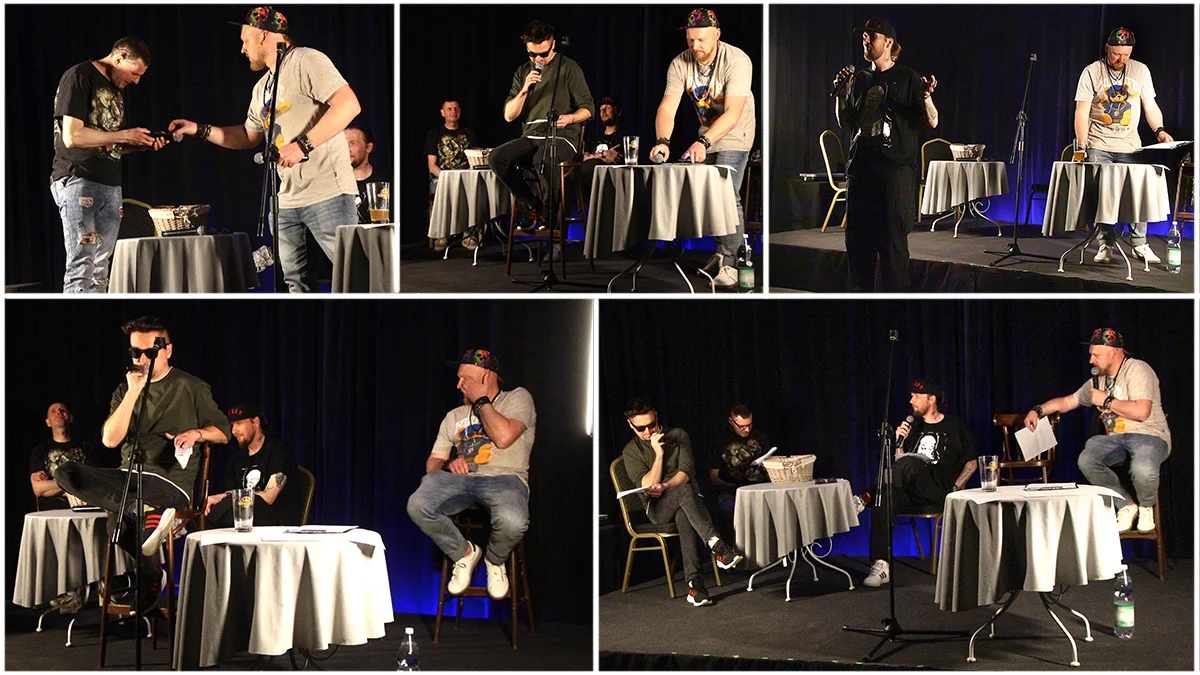 Spotkanie ze stand-upem firmował Paweł Klinszport*, który po raz trzeci wystąpił na rawickiej scenie. Zapowiadana była niespodzianka i okazało się, że zaprosił do wstępu swoich przyjaciół: Huberta Górskiego, Mariusza Nowaka i Michała „Wieszaka” Heluszkę. Był to cih debiut na stad-upowej scenie.