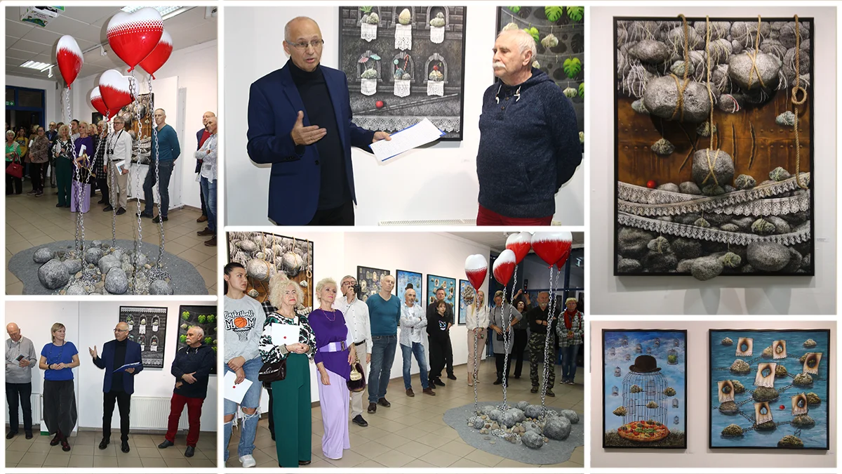 - Twórczość Wojciecha Akuszewskiego ma mocny związek w surrealizmem, wypracował swój indywidualny, rozpoznawalny styl - mówił komisarz wystawy, Witold Adamczyk. - Cechuje go świetna kolorystyka, perfekcyjna technika, łącząca kolaż z malarstwem olejnym. Jego poetyckie obrazy nasycone są symbolami i znaczeniami odnoszącymi się zarówno do współczesności, jak i do zdarzeń minionych. Często jest to swoisty dialog z widzem i tradycją surrealizmu.