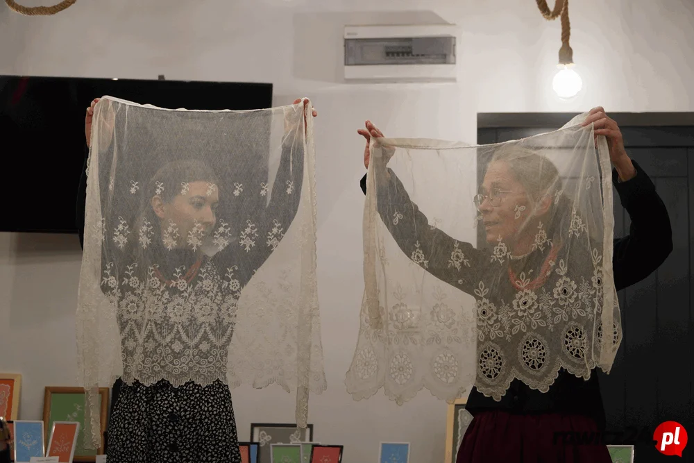 - Co wyróżniało ten haft? Poza tym, że jest biały, że jest na tiulu? Na tym terenie, najdłużej chyba, utrzymał się haft przewlekany. Przewlekany, czyli jak sama nazwa mówi, igła szła w górę i w dół. Był to haft wykonywany na tiulu i część naszych prac tym starym haftem została wykonana. Wszyscy uczestnicy naprawdę się sprężyli. Powstały fartuchy, kryzy, obrazki, zazdrostki, torby i cudowne, delikatne zawieszki na choinkę. Wyrazy uznania dla tych najmłodszych - opowiadała.