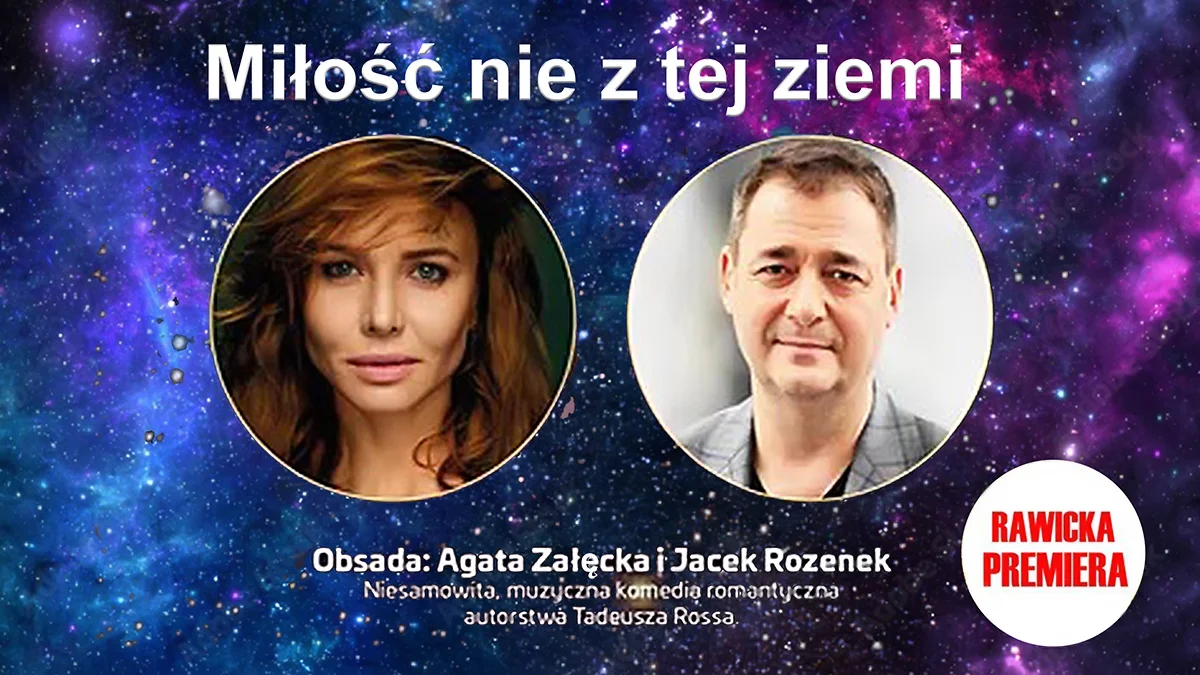 „Miłość nie z tej ziemi” autorstwa Tadeusza Rossa, to pełna niespodzianek muzyczna komedia w reżyserii Dariusza Taraszkiewicza. Mateusza, młodego, przystojnego mężczyznę, pewnego dnia odwiedza nieoczekiwany gość. Jest nim piękna, tejmnicza kobieta o imieniu Adira. Odmieni to zupełnie życie głównego bohatera przedstawienia.
