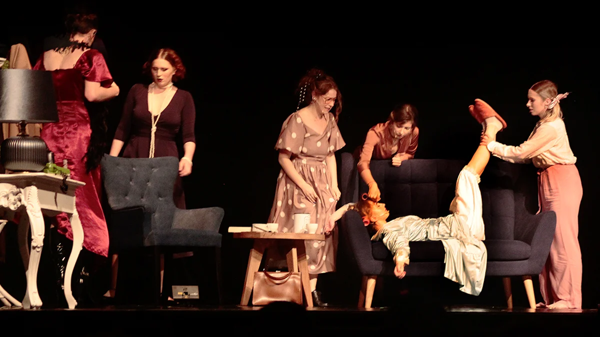 Wartka i dynamiczna akcja spektaklu toczy się zimą, tuż przed świętami Bożego Narodzenia w dużej, wiejskiej posiadłości. Pan domu, bogaty przemysłowiec Marcel, został znaleziony w sypialni z nożem w plecach. O zabójstwo podejrzane są powiązane z nim kobiety, które przebywają w domu: żona Gaby, siostra Pierrette, teściowa Mamy, szwagierka Augustine, córki: Suzon i Catherine oraz dwie służące: Louise i Chanel. Każda ma motyw, by zabić, w tle pojawia się spadek, ale mają alibi.