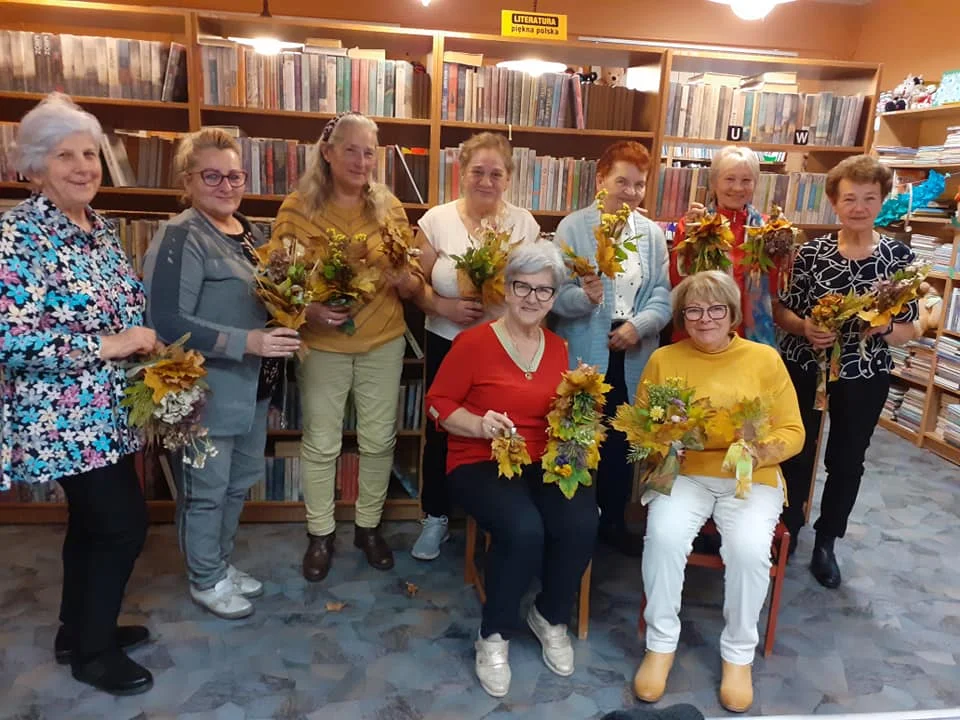 - Jesienne popołudnie spędziłyśmy na wykonywaniu bukiecików z liści. Oprócz listków, w kompozycjach znalazły się: zasuszone hortensje, zatrwian, lawenda, czy tzw. słomianki. Seniorki, obecne na warsztatach, wykazały się olbrzymią kreatywnością i pracowitością. Przy kubeczku kawki lub herbatki wysłuchałyśmy kilku jesiennych wierszy - opowiada bibliotekarka.