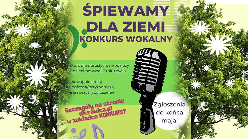Aby wziąć udział w konkursie „Śpiewamy dla Ziemi” trzeba nagrać piosenkę (video), o szeroko pojętej tematyce ekologicznej (może być własnego autorstwa lub cover).i umieścić na YouTube. Link należy wysłać do końca maja adres - domkulturywrawiczu@gmail.com w tytule wpisując „zgłoszenie - piosenka ekologiczna”. Dokładny regulamin dostępny jest TUTAJ