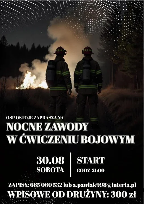 Godz. 21.00 - Nocne Zawody w Ćwiczeniu Bojowym w Ostojach, po nich zabawa taneczna, zagra DJ Kewin