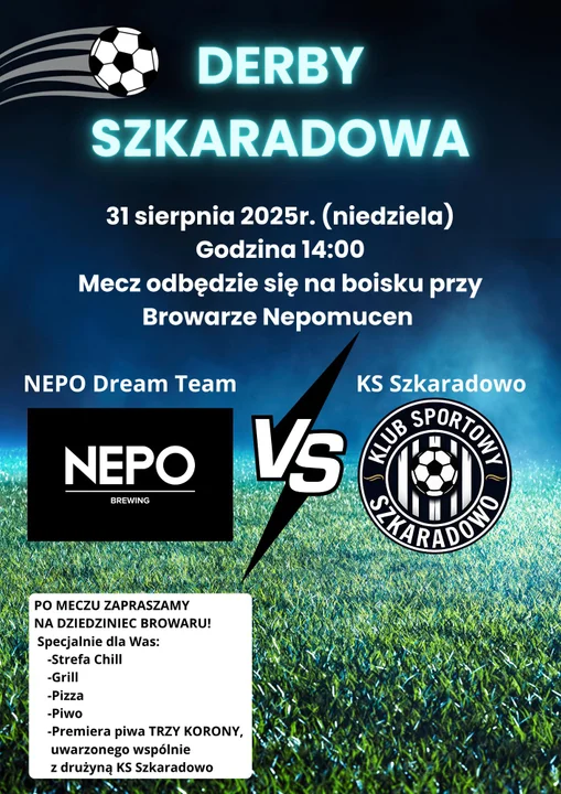Godz. 14.00 - Piłkarskie derby Szkaradowa, Browar Nepomucen vs KS Szkaradowo, boisko przy browarze