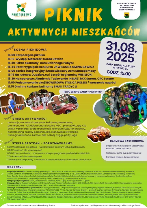 Godz. 15.00 - Piknik Aktywnych Mieszkańców, park przy Domu Kultury w Rawiczu