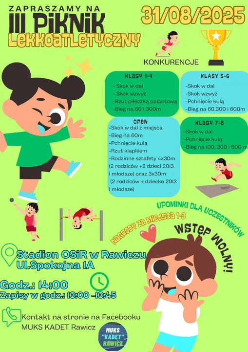 Godz. 14.00 - III Piknik Lekkoatletyczny, stadion OSiR w Rawiczu