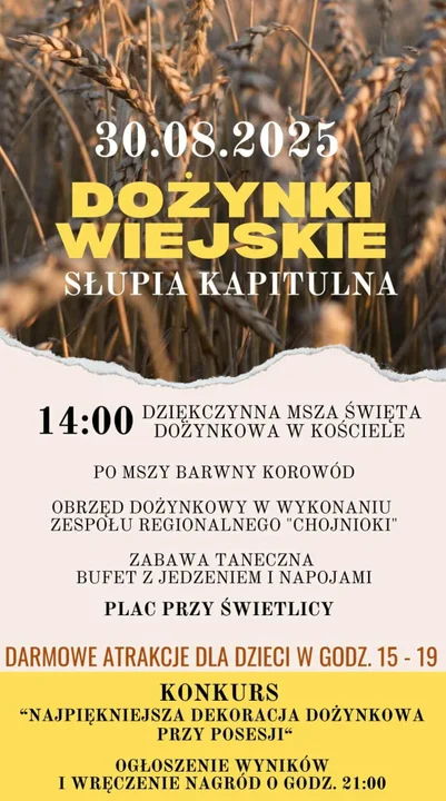 Godz. 14.00 - Dożynki w Słupi Kapitulnej