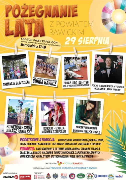 Ostatni weekend sierpnia 2025 w Powiecie Rawickim zapowiada się wyjątkowo atrakcyjnie. Od piątku, 29 sierpnia, do niedzieli, 31 sierpnia, na mieszkańców czekają liczne wydarzenia kulturalne, sportowe i rekreacyjne, które pozwolą pożegnać lato w niezapomniany sposób. W programie znajdą się m.in. Pożegnanie Lata z Powiatem Rawickim w Sierakowie, kino plenerowe w Miejskiej Górce, maraton kolarski „Od Świtu do Zmierzchu” z startem i metą w Miejskiej Górce, a także V Letnia Spartakiada "Żylice kontra reszta świata".