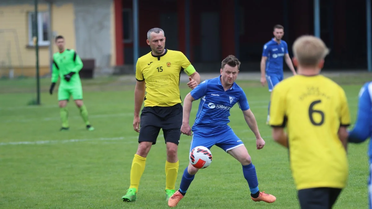 W drugiej części spotkania dubletem popisał się wprowadzony po przerwie Dawid Dolata (na zdjęciu - w niebieskim stroju). Przy pierwszej jego bramce asystował Hubert Grzywaczewski. W innej akcji, po rzucie rożnym, bramkarz z Osiecznej sparował strzał Marcina Kostki. Najlepiej w polu karnym odnalazł się Dawid Dolata i po raz drugi pokonał golkipera gości.