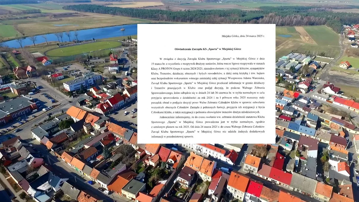 - Zarząd Klubu Sportowego "Sparta" w Miejskiej Górce przekazał informacje w gronie działaczy i trenerów pracujących w klubie oraz podjął decyzję, że podczas Walnego Zebrania Sprawozdawczego, które odbędzie się w dniach 24 lub 30 czerwca br. w trybie normalnym w celu przyjęcia sprawozdania działalności za rok 2024 i za I półrocze roku 2025 rozszerzy stały porządek obrad o podjęcie decyzji przez Walne Zebranie Członków Klubu w sprawie: odwołania wszystkich obecnych członków zarządu z pełnionych funkcji, przyjęcia ich rezygnacji z bycia członkami klubu, a także rezygnacji z pełnienia obowiązków trenerów drużyn młodzieżowych. Jednocześnie informujemy, że do czasu zwołania ww. zebrania działalność statutowa Klubu Sportowego "Sparta" w Miejskiej Górce prowadzona jest w trybie normalnym, zgodnie z ustalonym planem na rok 2025. Od dnia 24 marca 2025 r. do czasu Walnego Zebrania Członków, Zarząd Klubu Sportowego "Sparta" w Miejskiej Górce nie udziela żadnych dodatkowych informacji w przedmiotowej sprawie.