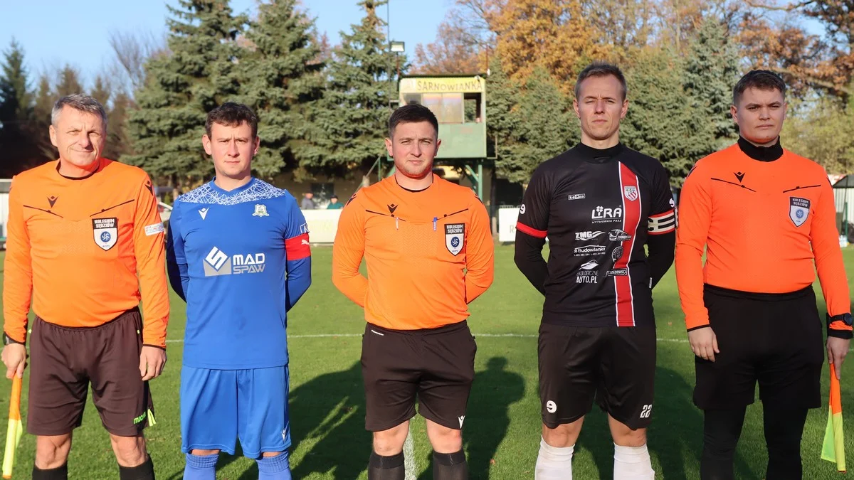 Pierwsza połowa sobotniego spotkania (8 listopada 2025 roku) nie zapowiadała porażki Sarnowianki. Gospodarze starali się skrupulatnie grać w obronie, odpowiadać rywalom kontratakami, a po utracie piłki, szybko odbudowywać pozycje. Blisko strzelenia bramki byli Paweł Bernadek, nominalny obrońca występujący na pozycji napastnika i Jonasz Wojtyczka. Obaj główkowali. W pierwszym przypadku strzał obronił bramkarz gości i wybił na rzut rożny, w drugim - piłka przeleciała tuż obok słupka. Na obu flankach w pojedynki szybkościowe wdawali się Mateusz Straburzyński i Filip Bojdo. Brakowało jednak finalizacji. Goście również długo bili głową w mur.