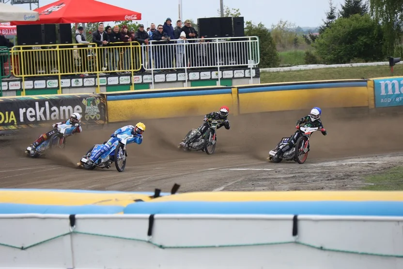 Od mocnego uderzenia mecz rozpoczęli goście z Tarnowa wygrywając pierwszy bieg 5:1. Na kontrę "Niedźwiadków" długo nie trzeba było czekać, bowiem już w wyścigu młodzieżowców taki sam wynik, ale na korzyść Kolejarza dowiezli Drew Kemp i Franciszek Majewski. W trzeciej gonitiwe dnia bieg ponownie wygrali goście - tym razem wynikiem 4:2, pomiędzy Rene Bachem i Marko Lewiszynem na metę dojechał Tomasz Orwat. Czwarty bieg to odpowiedź ekipy z Rawicza - podobnie jak tarnowska ekipa, w trzecim wyścigu dowieźli do mety cztery punkty - Ryana Douglasa i Franciszka Majewskiego podzielił Daniel Klima. Po pierwszej serii remis 12:12.