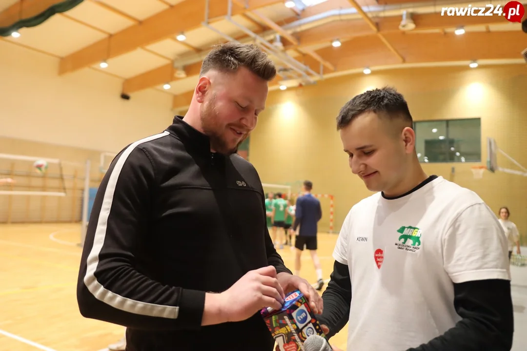 - Dziękuję wszystkim za miłą zabawę, grę far play i wsparcie WOŚP - mówi Kewin Maćkowiak, przewodniczący Młodzieżowej Rady Gminy Rawicz. - Dziękujemy gminie Rawicz i SP4 za użyczenie sali na turniej, Sklepowi ABC w Szymanowie za wodę i jabłka dla zawodników, firmie Studio Prestige za pyszną zupę pomidorową, firmie Antula za statuetki i Piekarni Kordylewski za chleb i wypieki - dodał.
