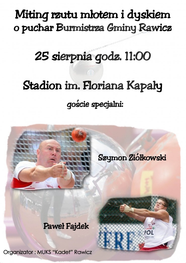 Zawody odbędą się w najbliższą sobotę (25 sierpnia) na Stadionie im. Floriana Kapały w Rawiczu. Początek o godzinie 11.00. Do rywalizacji przystąpią juniorzy, młodzieżowcy i młodzicy. Organizatorem mitingu jest MUKS „Kadet” Rawicz. (teka)