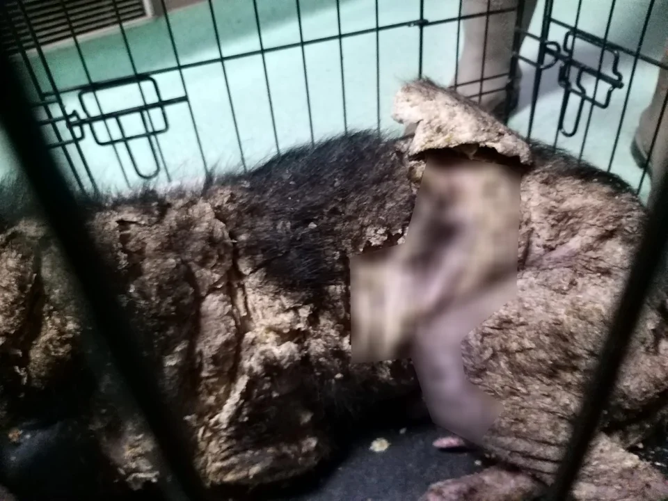 Po bliższym obejrzeniu zwierzęcia, stwierdzono, że jest w opłakanym stanie.