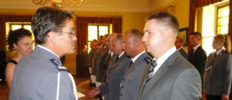 Inspektor podziękował również staroście, burmistrzom i wójtowi za pomoc i wsparcie oraz przydstawicielom straży pożarnej, służby więziennej i prokuratury za współpracę. Podczas uroczystości, wręczono funkcjonariuszom awanse na wyższe stopnie. (kp)