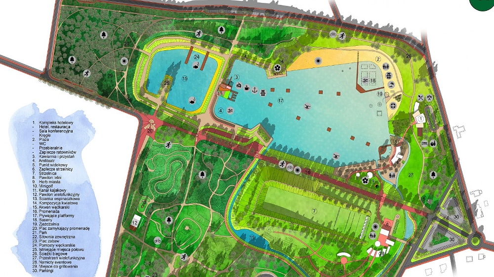 - Projekt ma polegać na budowie kąpieliska, 1,7 km ścieżek pieszo-rowerowych z oświetleniem i ścianki wspinaczkowej. Powstanie też promenada o długości 1 km. W ramach inwestycji powstaną panele fotowoltaiczne zasilające ulokowane na terenie poligonu obiekty. Mają też zostać przebudowane ulice – 800 m Świętojańskiej i 600 m Czeladniczej - informuje burmistrz Grzegorz Kubik na swoim profilu społecznościowym.