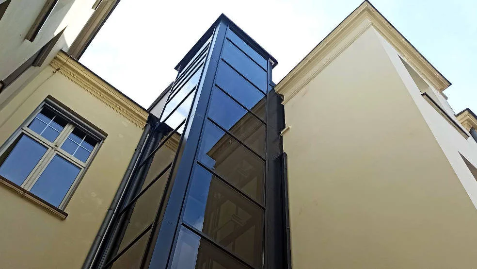 Winda o nośności 650 kg zainstalowana została w szybie wybudowanym na zewnątrz budynku od strony zaplecza. Dzięki temu będzie do niej swobodny dojazd z parkingu. Wnętrze windy jest dostosowane do osób z niepełnosprawnościami i wyposażone w sygnalizację dźwiękową.