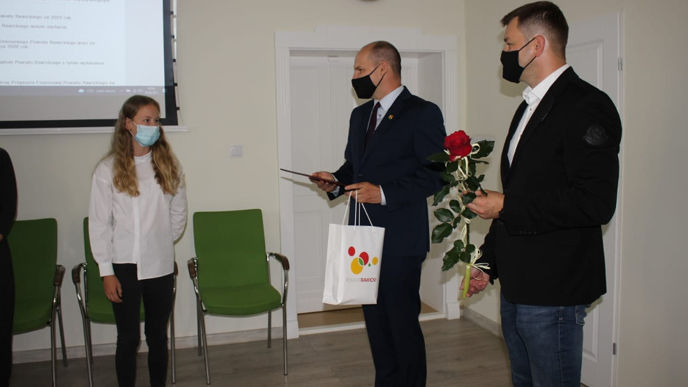 Zanim radni przystąpili do obrad odbyła się miła uroczystość. Starosta Adam Sperzyński i przewodniczący rady powiatu Roman Sidor pogratulowali młodej sportmence z Bojanowa - Zofii Ratajczak - ostatnich sukcesów sportowych i wręczyli nagrodę.