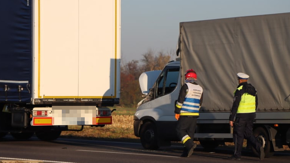 Na drodze krajowej nr 36 - między Rondem Sarnowskim a Rondem WOŚP - doszło do zdarzenia z udziałem dwóch pojazdów - busa i ciężarówki.