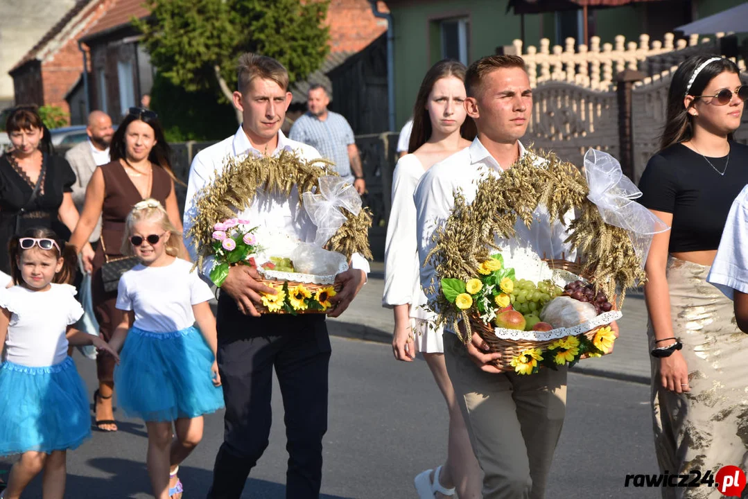 Uroczystości dożynkowe rozpoczęły się przemarszem przez wioskę. Prowadził go zaprzęg konny powożony przez Szymona Nawrota, tuż za nim szli muzycy z Orkiestry Dętej Miejska Górka oraz szef lokalnej straży pożarnej, Przemysław Wysocki.