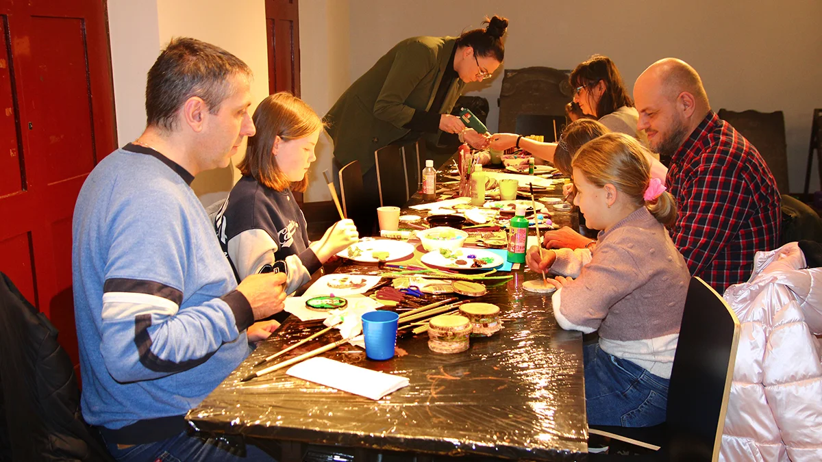 W czasie warsztatów można było wykonać fantazyjne zawieszki na choinkę, między innymi mikołaje z pędzli, bombki, czy pomalowane drewniane krążki z uśmiechniętymi pyszczkami zwierzątek.