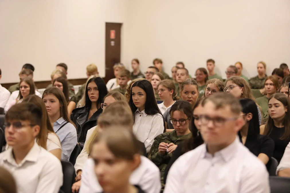 Podczas akademii nawiązano do obchodzonej dzień wcześnie rocznicy wybuchu II wojny światowej. Nie zabrakło krótkiego rysu historycznego oraz pieśni patriotycznych granych i śpiewanych przez uczennice szkoły.