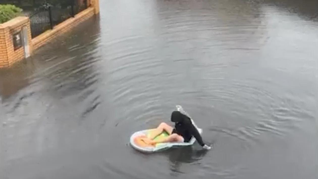 W piątek, 2 sierpnia 2024 roku pogoda nie rozpieszczała mieszkańców Rawicza. Od samego rana przez cały dzień padał deszcz, który dał się we znaki także mieszkańcom zalewanego osiedla w Sierakowie. Jeden z mieszkańców zdecydował się na dosadne zaprezentowanie tego, jak wygląda osiedle podczas opadów deszczu. W internecie umieścił film, na którym pływa materacem po tafli wody.