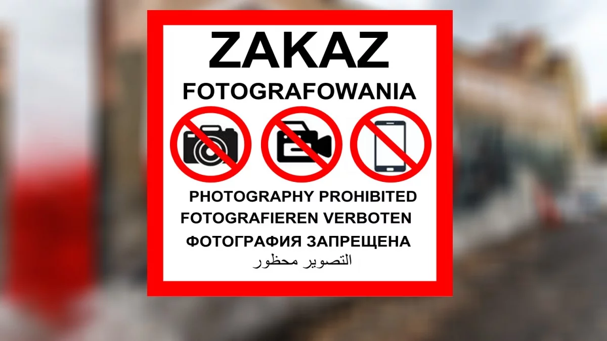 Jak czytamy w artykule 616a ustawy, zakazuje się - bez zezwolenia - fotografowania, filmowania lub utrwalania w inny sposób obrazu lub wizerunku: obiektów szczególnie ważnych dla bezpieczeństwa lub obronności państwa, obiektów resortu obrony narodowej nieuznanych za obiekty szczególnie ważne dla bezpieczeństwa lub obronności państwa, obiektów infrastruktury krytycznej, jeżeli zostały oznaczone znakiem graficznym wyrażającym ten zakaz, zwanym dalej "znakiem zakazu fotografowania", a także osób lub ruchomości znajdujących się w tych obiektach.O oznaczeniu obiektu znakiem zakazu fotografowania decyduje organ właściwy w zakresie ochrony tego obiektu. Tablice muszą być widoczne dla osób postronnych. Oznaczenia obiektu dokonuje podmiot władający obiektem.