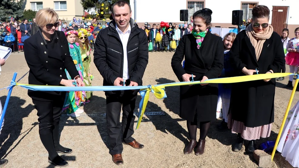 Także pozostali zabierający głos, w tym wiceburmistrz oraz szefowa rady rodziców, życzyli bezpiecznej i udanej zabawy na nowoczesnym, jutrosińskim placu zabaw. Po przemówieniach uczniowie wystąpili w oryginalnym programie artystycznym. Zwieńczeniem uroczystości przy podwórku było przecięcie wstęgi.