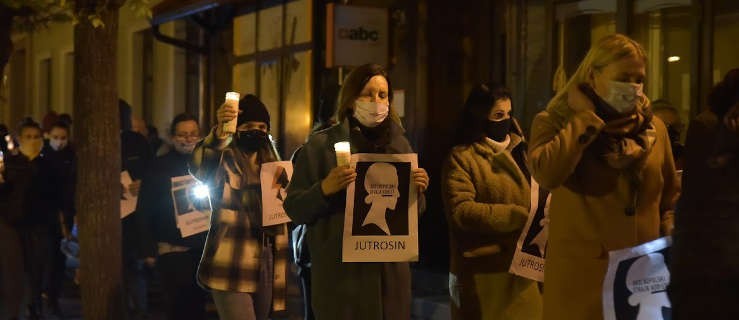 Ze zniczami i wymownymi hasłami szło około 60 osób.