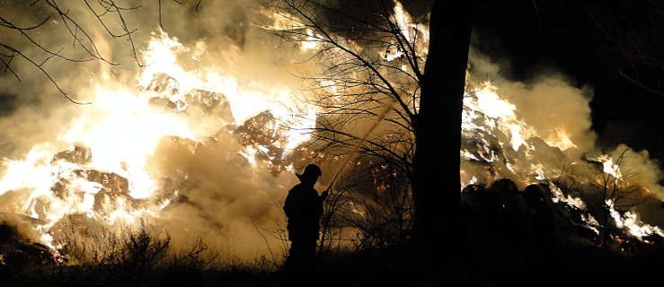 Ogień bardzo szybko opanował potężne bale słomy.