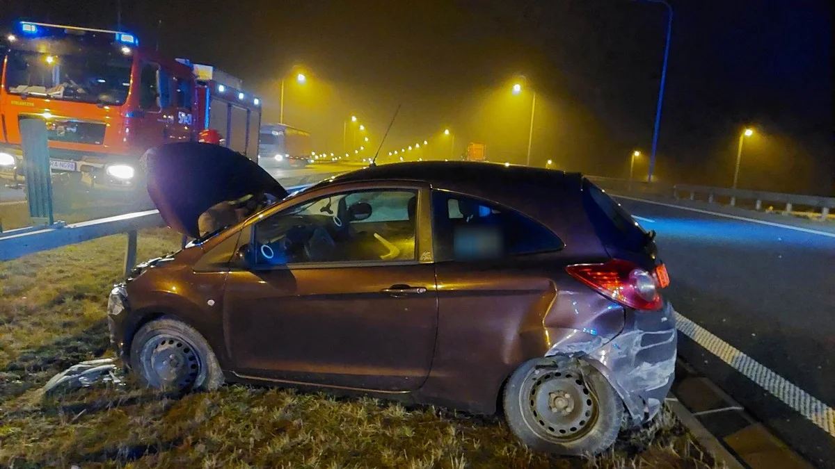 Do kolizji doszło w poniedziałek (23.01.2023). Zgłoszenie wpłynęło do służb o godz. 18.46. Dwa auta - toyota i ford - zderzyły się bokami. Jedno zatrzymało się na pasie zieleni przy barierkach wewnątrz "eski", drugie wylądowało na barierkach - po prawej stronie. Oprócz służb z powiatu trzebnickiego, na miejsce udali się strażacy zawodowi z Rawicza.