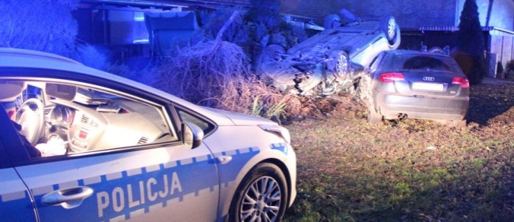 Między Jutrosinem a Dłonią zderzyły się dwa samochody osobowe. Obydwa w efekcie wjechały w przydrożny płot. Jeden z nich również dachował.