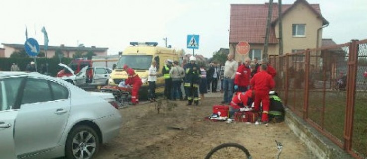 W wyniku zderzenia samochodów, BMW zostało odrzucone i uderzyło w rowerzystkę, 66-letnią mieszkankę Niemarzyna. - Kobieta doznała złamania obu kości podudzia oraz kości przedramienia - informuje Beata Jarczewska. Podkreśla, że policja ustala okoliczności wypadku. (kp)