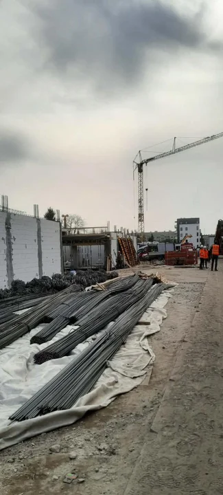 - Blok nr 1: Trwa zbrojenie stropu nad parterem. Wkrótce zaplanowano betonowanie i murowanie pierwszego piętra.
