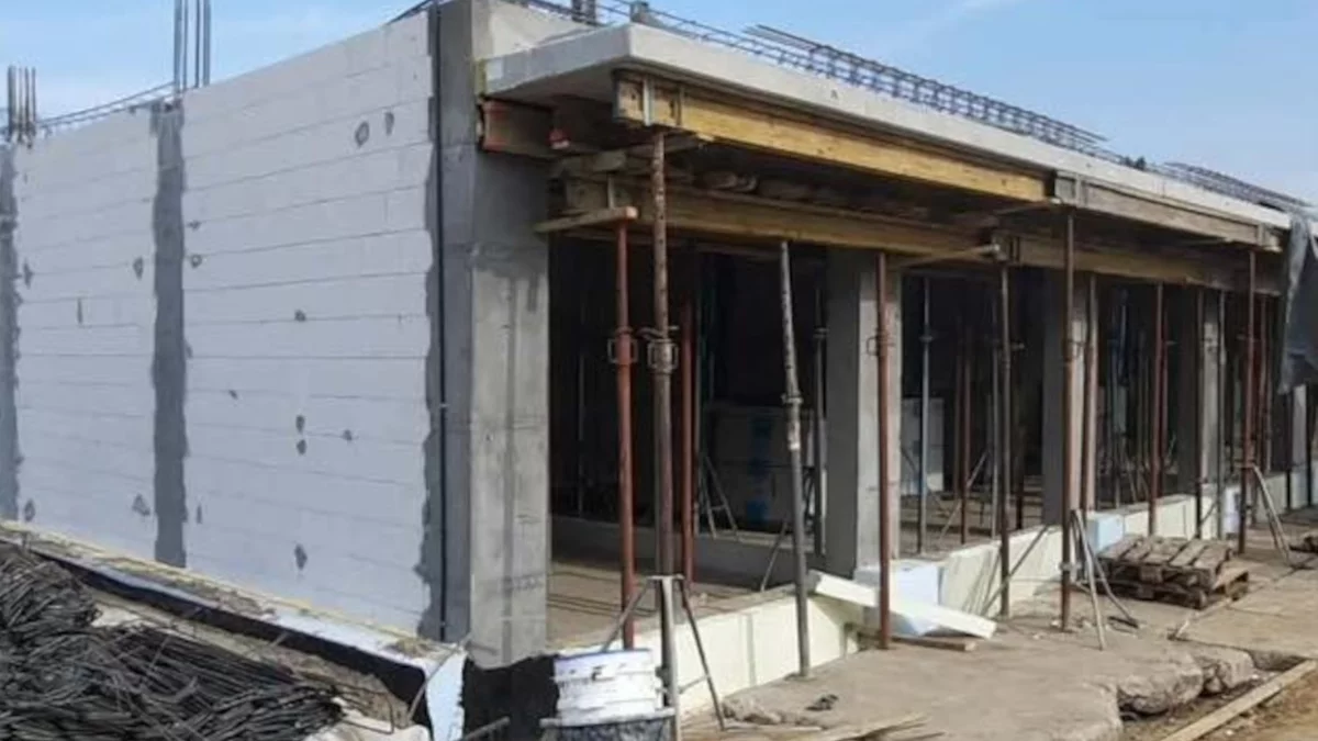 - Blok nr 3: Tutaj zakończono już prace nad konstrukcją nadproży, a ekipy przygotowują się do zbrojenia stropu.