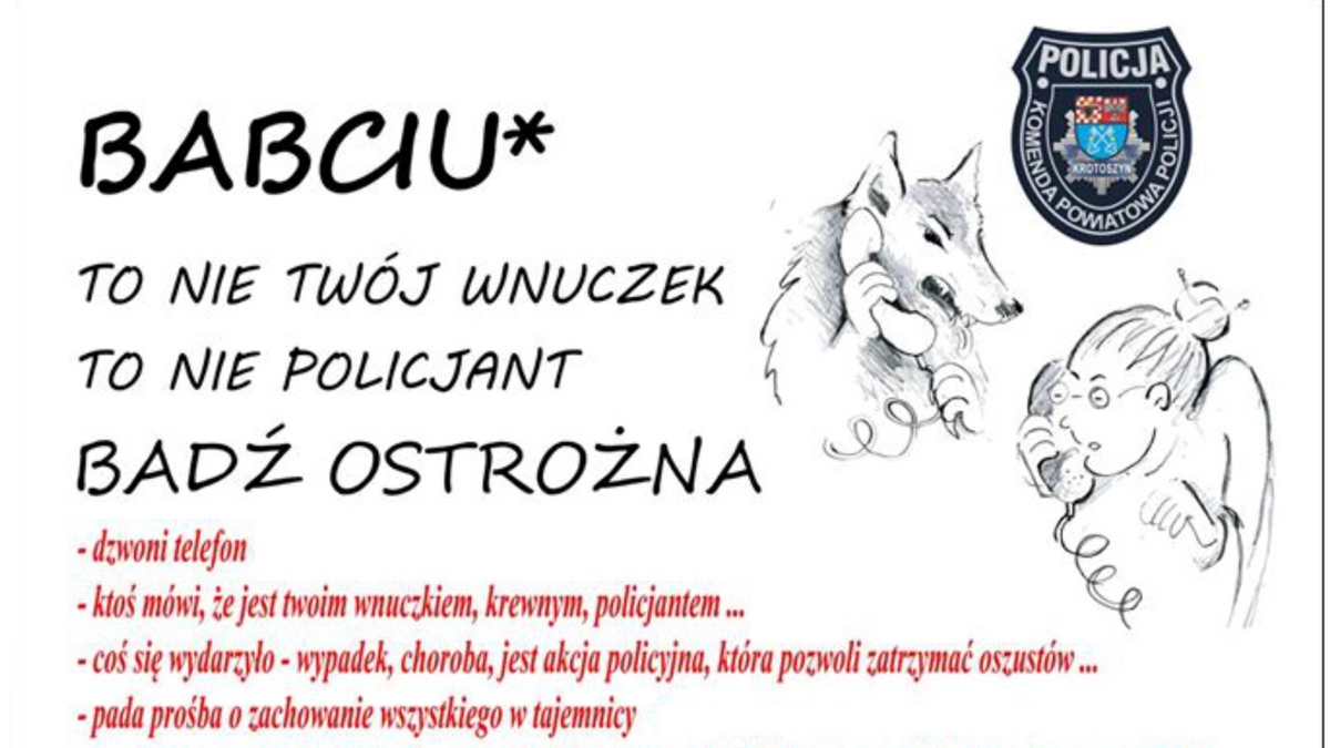 - Otrzymaliśmy sygnały od osób z powiatu rawickiego, że sprawcy działają na naszym terenie. Wykonują telefony i okłamują , że wnuczek czy wnuczka spowodowały wypadek i szybko są potrzebne im pieniądze. Nie dajmy się oszukać - apeluje asp. sztab. Beata Jarczewska, oficer prasowy Komendy Powiatowej Policji w Rawiczu.